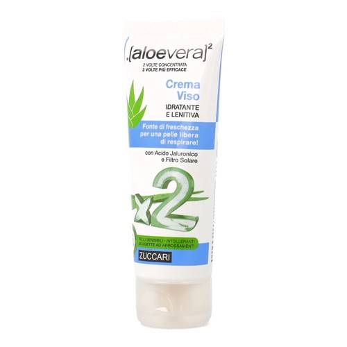 [aloevera]2 Crema Viso IDRATANTE LENITIVA Crema per il viso, idrata e lenisce con una speciale formulazione che lascia la pelle libera di respirare. Protegge dai raggi UV e minimizza le imperfezioni, conferendo un aspetto radioso. Dalla formulazione senza acqua aggiunta, completamente sostituita da succo d'Aloe vera non pastorizzato e non filtrato a carboni, concentrato due volte attraverso l'esclusivo processo reversosmose.