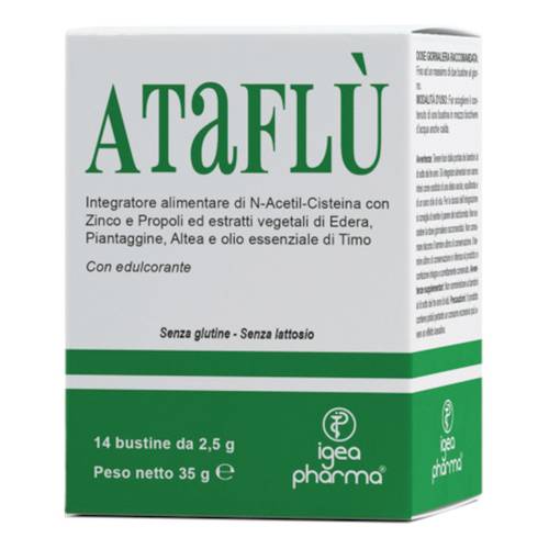 Agente di carica: sorbitolo; maltodestrina da mais; N-Acetil-cisteina (12%); regolatori dell'acidità: bicarbonato di sodio, carbonato anidro di sodio; acidificante: acido tartarico; aroma; e.s. di Edera tit. 1% in ederagenina (Hedera helix L., foglie: maltodestrina da mais) (2%); e.s. di Altea E/D 1:4 (Althaea officinalis L., radice; maltodestrina da mais) (1,2%); e.s. di Piantaggine E/D 1:4 (Plantago major L., foglie, maltodestrina da mais) (1,2%); e.s. di Propoli tit. 6% in galangina (Propolis, resina) (1%); Gluconato di zinco (0,4%); Timo O.E. polvere (Thymus vulgaris L., olio essenziale; supporto: biossido di silicio) (0,12%); edulcorante: sucralosio.