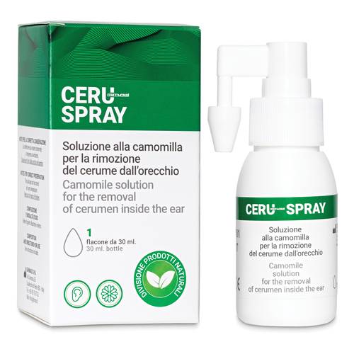 CERU SPRAYDescrizione Detergente dell'orecchio alla camomilla. Modalità d'uso Utilizzare una volta al giorno, la mattina o la sera. Portare l'erogatore vicino all'orecchio e spruzzare alcune dosi; at...