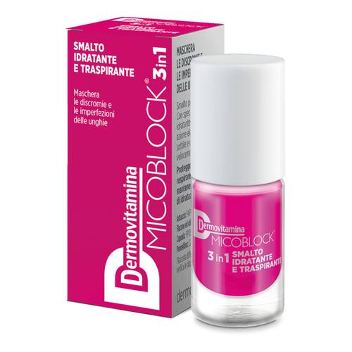 Dermovitamina MICOBLOCK 3 in 1SMALTO IDRATANTE E TRASPIRANTE Descrizione Smalto per unghie. Maschera le discromie e le imperfezioni delle unghie. Con speciale formulazione idratante e traspirante, ad azione...