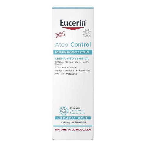 Eucerin AtopiControl CREMA VISODescrizione Trattamento base per Dermatite Atopica. Nutre intensamente. Riduce il prurito e l'arrossamento. 48 ore di idratazione. Trattamento viso lenitivo, appos...