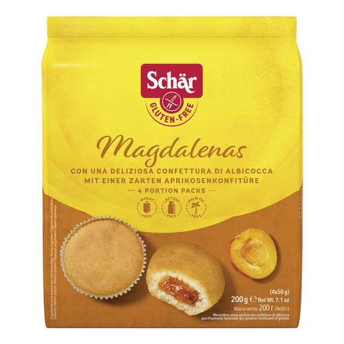 FLAVIS MAGDALENASDescrizione Merendina morbida con ripieno di marmellata d'albicocca. Ideale come merenda. Ingredienti Confettura di albicocca 46% (sciroppo di glucosio-fruttosio, purea di albicocca,...