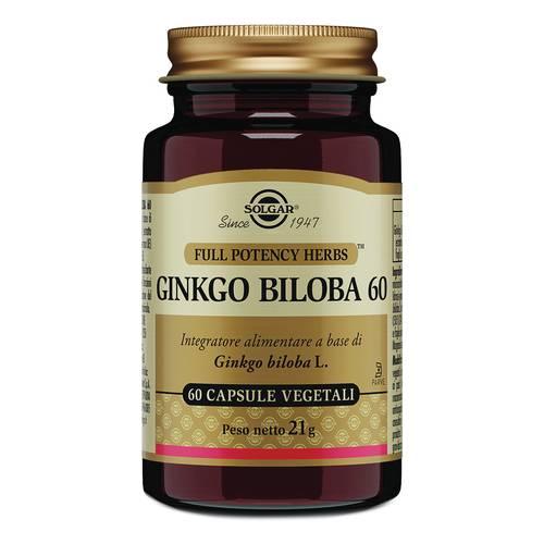 GINKGO BILOBA 60Descrizione Integratore alimentare a base di ginkgo (Ginkgo biloba L.) estratto standardizzato di foglie (origine: non UE) e foglie polverizzate (origine: UE). Il ginkgo presenta azione anti...