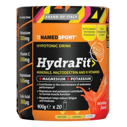 HydraFit>Minerals, Maltodextrin and 9 Vitamins Descrizione Integratore alimentare con zucchero ed edulcorante, in polvere solubile a base di magnesio, potassio, vitamine del gruppo B, vitamina C e sali mine...