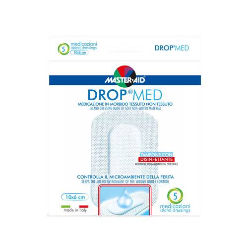 MASTER•AID DROP MED Medicazione traspirante in tessuto non tessuto, dotata di un tampone assorbente con sostanza disinfettante (clorexidina digluconato 0,5%). Collante ipoallergenico, privo di ...