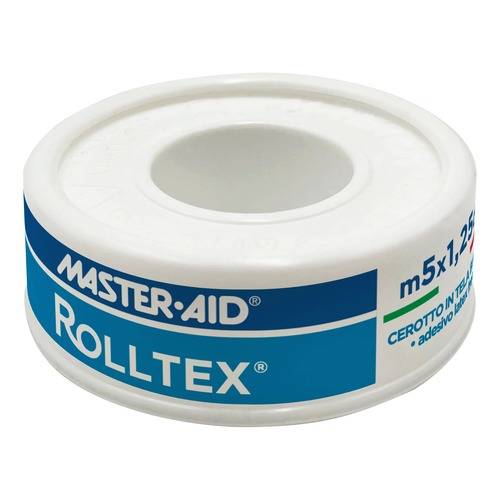 MASTER•AID RolltexCaratteristiche Cerotto in tela di rayon viscosa di colore bianco; è caratterizzato da una forte adesività immediata ed un elevato grado di adesione permanente. Il supporto (bia...