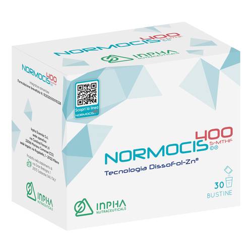 NORMOCIS 400Descrizione Integratore alimentare a base di betaina, zinco, folato e vitamine del gruppo B. Il folato e le vitamine B12 e B6 contribuiscono al normale metabolismo dell’omocisteina. Con ed...