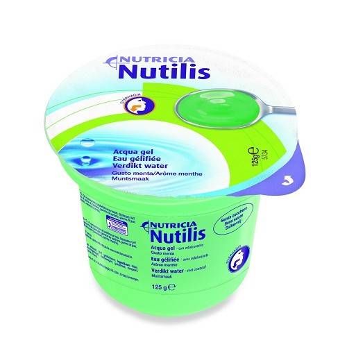 Nutilis Aqua gelGusto menta Descrizione Bevanda a consistenza gelatinosa e scivolosità adeguata per favorire la deglutizione. Nutilis Aqua gel è pronta all’uso, con proprietà di resistenza all’amilasi*. App...