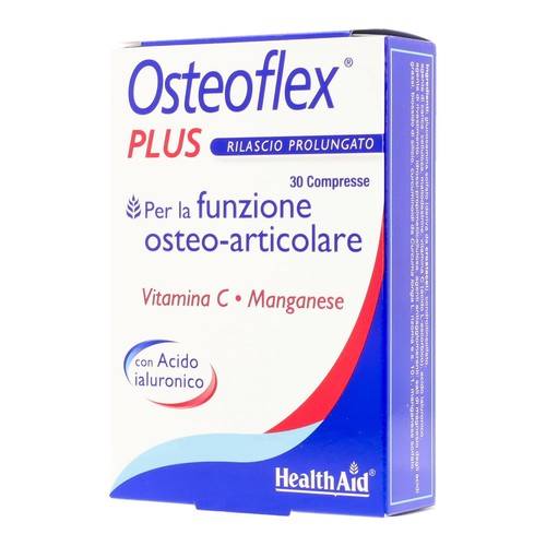 Osteoflex PLUSDescrizione Integratore alimentare a base di glucosamina, condroitina, curcuma, vitamina C, manganese e acido ialuronico, utile per mantenere funzionali le articolazioni. Privo lievito, frum...