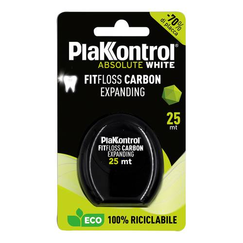 PlaKKontrolFITFLOSS CARBON EXPANDING Descrizione Filo nero espandibile ad azione sbiancante. L'aumento di volume durante l'utilizzo fa sì che si adatti perfettamente ai diversi spazi interdentali. Questo...