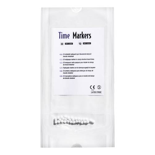 I marcatori vengono utilizzati per la determinazione dei tempi di transito intestinale in quei pazienti per i quali il cambiamento di dieta non ha dato esito soddisfacente nella cura della stipsi e che quindi devono essere affetti da disturbi dell'espulsione delle feci a livello ano-rettale o avere una forma piú complessa di stipsi colica con rallentamento del transito totale. La principale destinazione d'uso dei marcatori tipo Time-Markers é quella di seguire esattamente il percorso del cibo in tutto il tratto digerente ed in particolare in quello intestinale senza alterare minimamente la funzione digestiva e la funzione intestinale. Non contengono lattice.