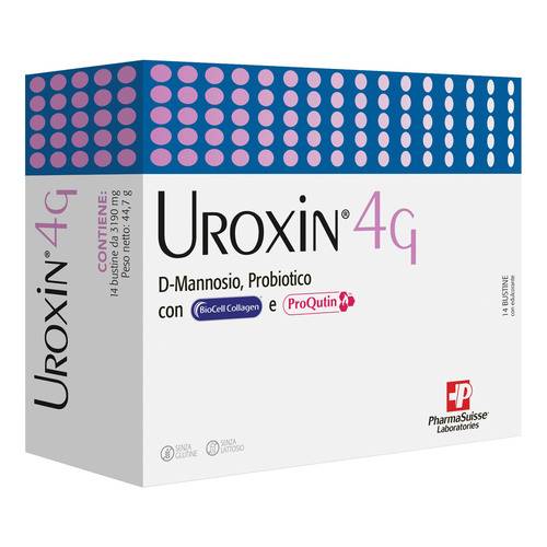 UROXIN 4GDescrizione Integratore alimentare a base di D-mannosio, ProQutin, associazione brevettata di propoli e quercetina, Bacillus coagulans ad azione probiotica e BioCell Collagen, a contenuto standardi...