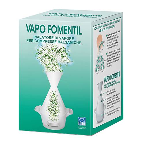 VAPO FOMENTILDescrizione Inalatore di vapore per compresse balsamiche. Favorisce un'efficace e immediata inalazione. Grazie alla sua forma ergonomica ad imbuto, convoglia i vapori direttamente sull'ar...